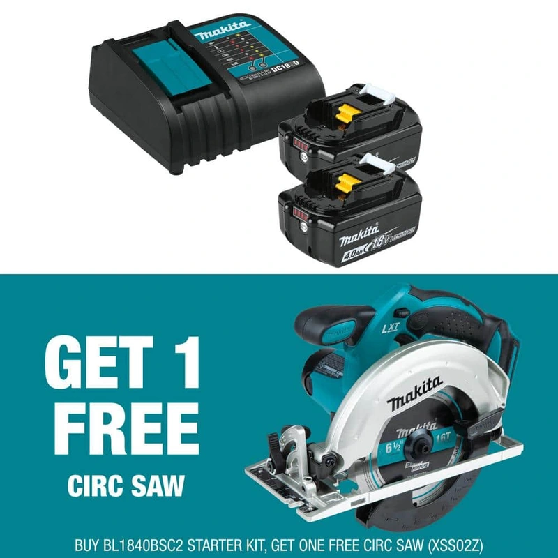 Makita 18V LXT Battery & Charger Starter Pack with Circular Saw The Makita 18V LXT Lithium-Ion Battery and Charger Starter Pack offers a reliable, high-performance solution for powering your cordless tools, with a bonus Cordless Circular Saw included.