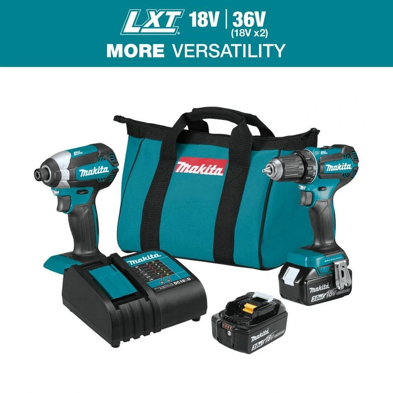 Makita 18V LXT Brushless Combo Kit Get power and versatility with the Makita 18V LXT Brushless Combo Kit. Featuring a driver-drill and impact driver, each tool is equipped with efficient brushless motors for longer run time and increased performance. Fast-