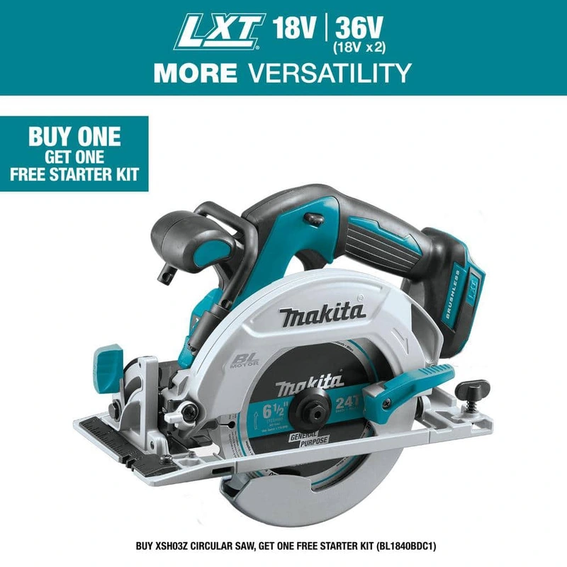 Makita 18V LXT Brushless Cordless Circular Saw The Makita 18V LXT Brushless Cordless 6-1/2" Circular Saw combines innovation with high performance, perfect for professional and DIY enthusiasts. Featuring Automatic Speed Change Technology, it optimizes cutt