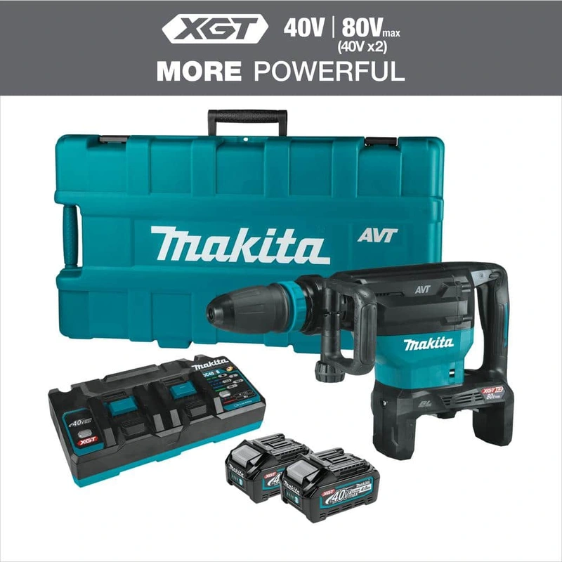 Transform your demolition work with precision and powerchoose the Makita 80V Max Cordless AVT Demolition Hammer today!