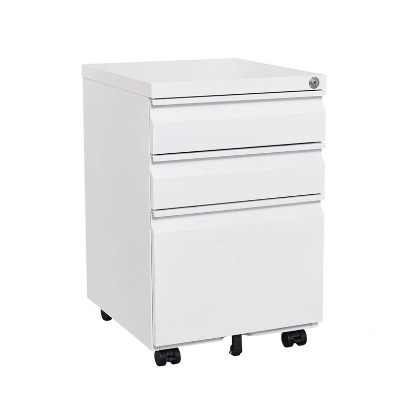 Organize your workspace with sophistication and security by choosing the Maocao Hoom Mobile 3-Drawer White File Cabinet today!