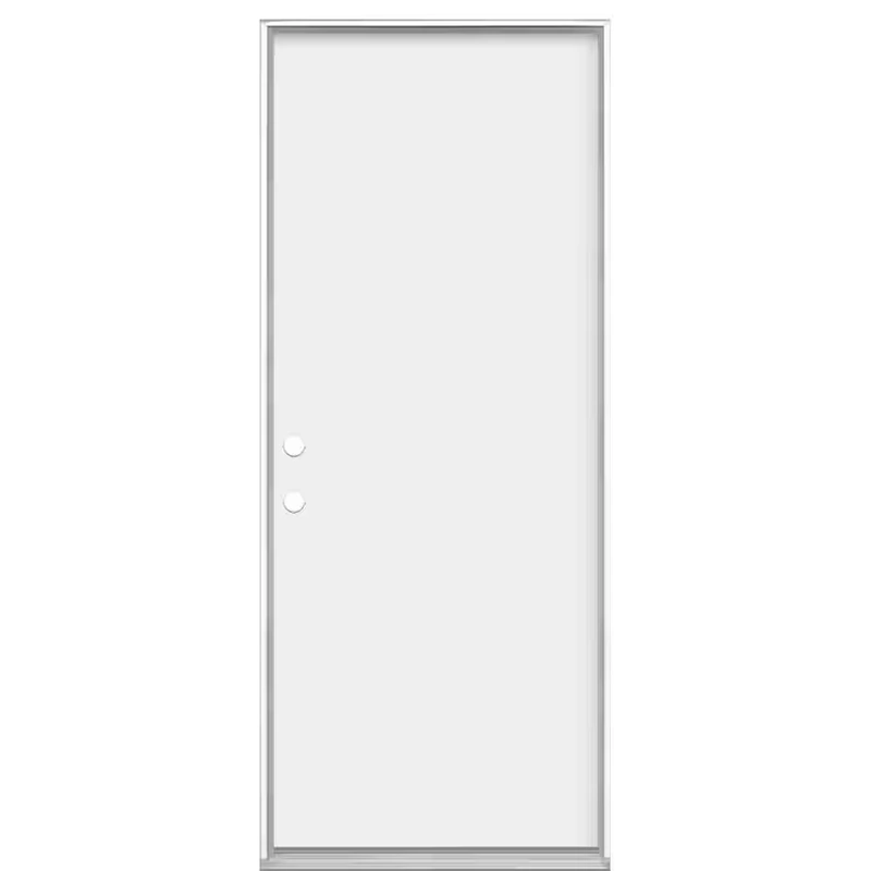 The Masonite 32 in. x 80 in. Premium Flush Right-Hand Inswing Primed Steel Prehung Front Exterior Door elevates your home's entrance with its robust security and sleek aesthetics. This expertly crafted door combines durability and style, offering an ideal