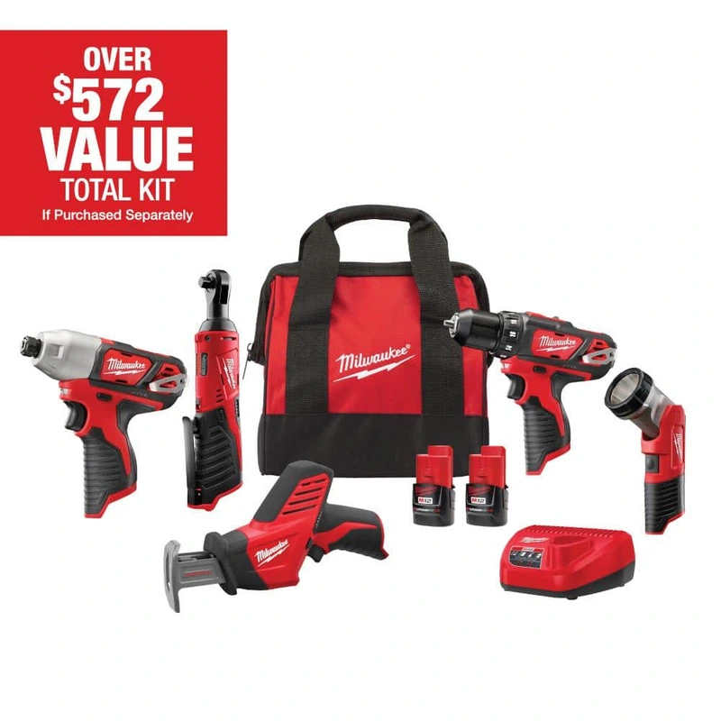 Milwaukee M12 Cordless 5-Tool Combo Kit Elevate your efficiency with the Milwaukee M12 12V Lithium-Ion Cordless Combo Kit, designed for optimal performance in any job. This compact kit includes five essential tools powered by Redlithium technology for long