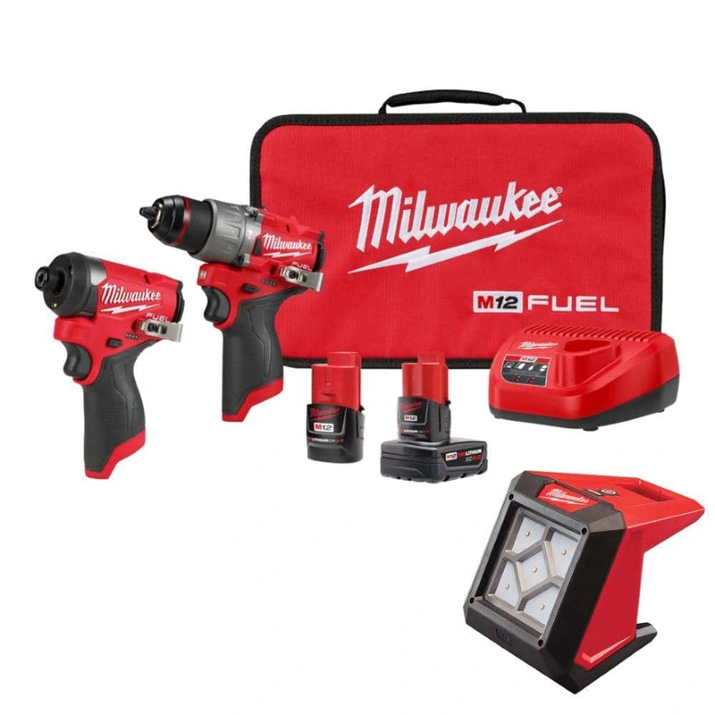 Milwaukee M12 FUEL 12-Volt Li-Ion Brushless Cordless Hammer Drill and Impact Driver Combo Kit (2-Tool) with LED Flood Light