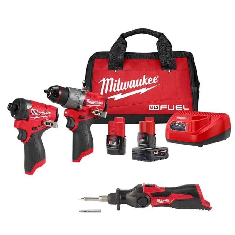 Milwaukee M12 FUEL Subcompact Combo Kit with Soldering Iron Milwaukee's M12 FUEL Subcompact Combo Kit delivers unmatched power and performance, featuring the most powerful subcompact drill and the fastest impact driver in its class. With a brushless motor
