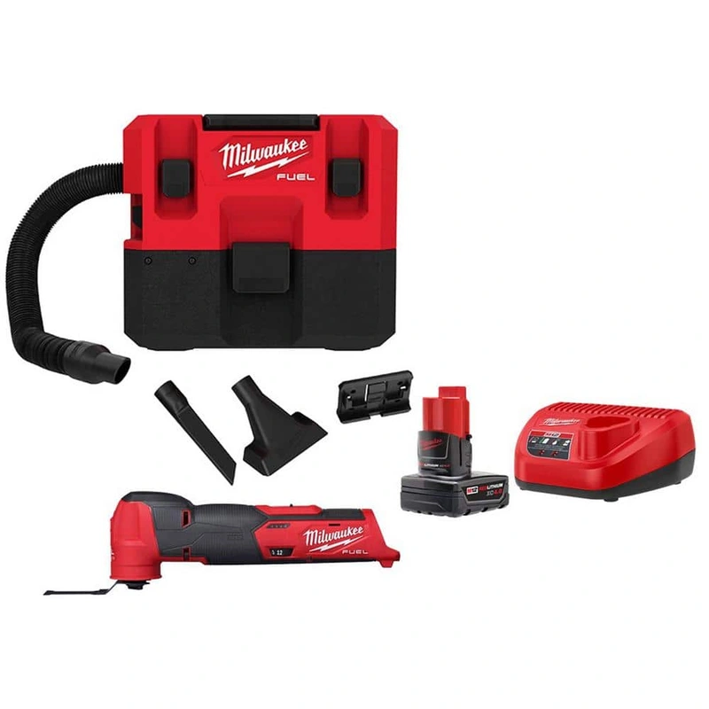 Milwaukee M12 Cordless Wet/Dry Vacuum & Multi-Tool Kit Experience unmatched performance with the Milwaukee M12 FUEL Cordless 1.6 Gal. Wet/Dry Vacuum & Oscillating Multi-Tool Kit. Engineered for power and convenience, this compact yet robust kit fea