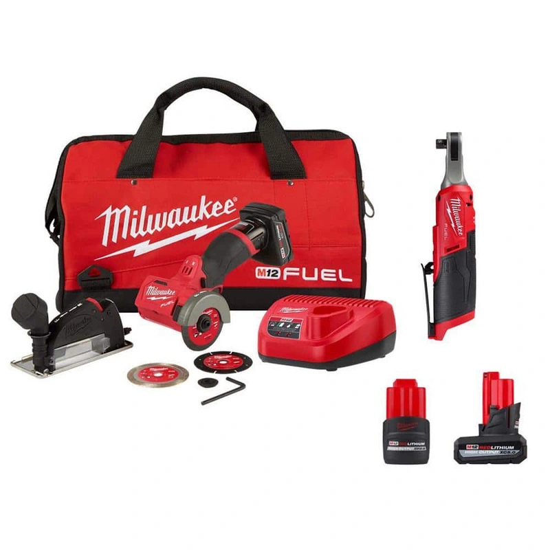 Milwaukee M12 FUEL 3" Brushless Cordless Cut Off Saw Kit The Milwaukee M12 FUEL 3" Compact Cut Off Tool Kit offers precision, power, and portability. With a high-speed brushless motor and up to 20,000 RPM, this cordless tool excels in cutting a wide variet