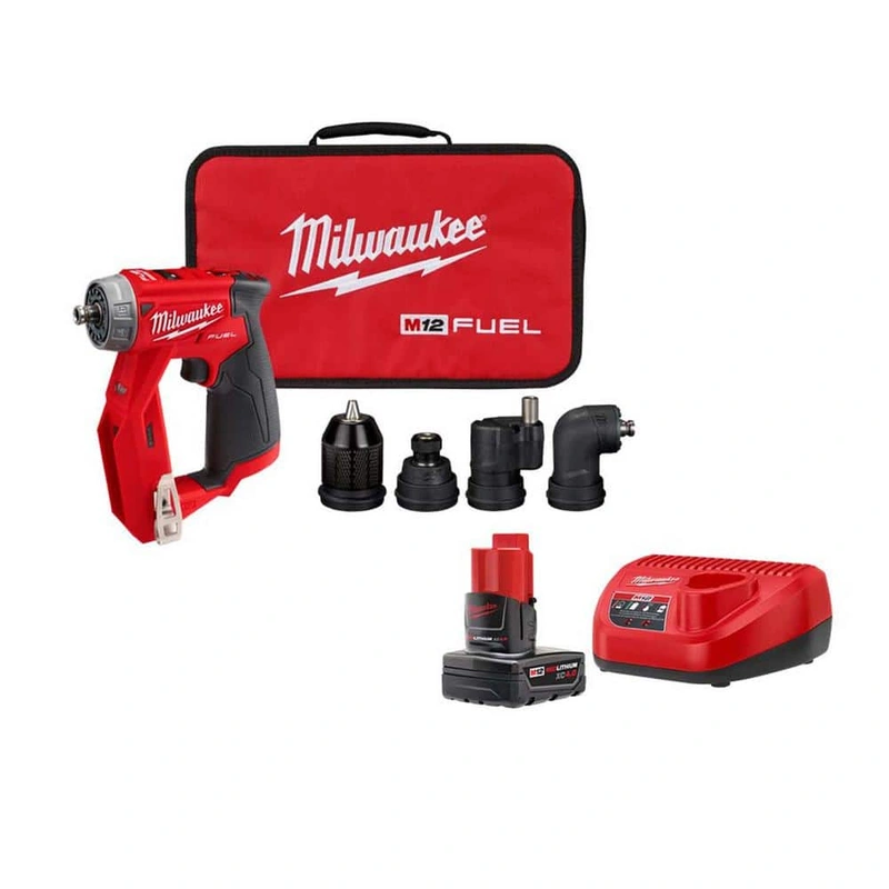 Milwaukee M12 4-in-1 Drill Driver Kit Experience the ultimate versatility with the Milwaukee M12 FUEL 4-in-1 Installation Drill/Driver Kit. This compact and powerful tool delivers 300 in-lbs of torque and is equipped with a POWERSTATE Brushless Motor, perf
