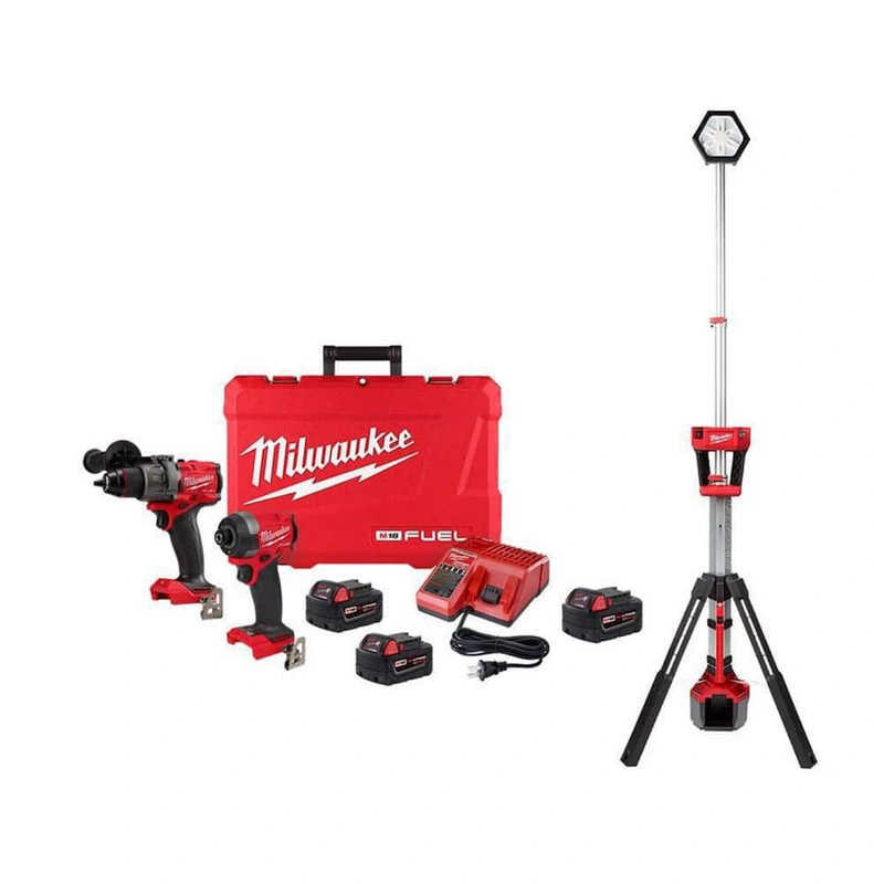 The Milwaukee M18 FUEL 18-V Brushless Cordless Combo Kit delivers unmatched power and control for your toughest applications. Featuring an M18 FUEL Hammer Drill and Hex Impact Driver, this kit offers industry-leading performance, coupled with the safest handling technology available through its AutoStop feature. Including two REDLITHIUM XC 5.0Ah Battery Packs, a dual power stand light, and carrying case, it’s a comprehensive solution for any jobsite.