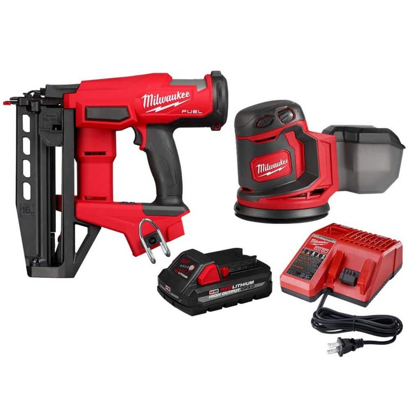 Milwaukee M18 FUEL Cordless Finish Nailer Kit The Milwaukee M18 FUEL 18-Volt Cordless 16-Gauge Straight Finish Nailer offers unmatched performance without the need for an air compressor or hose. Leveraging advanced brushless motor technology and REDLINK PL
