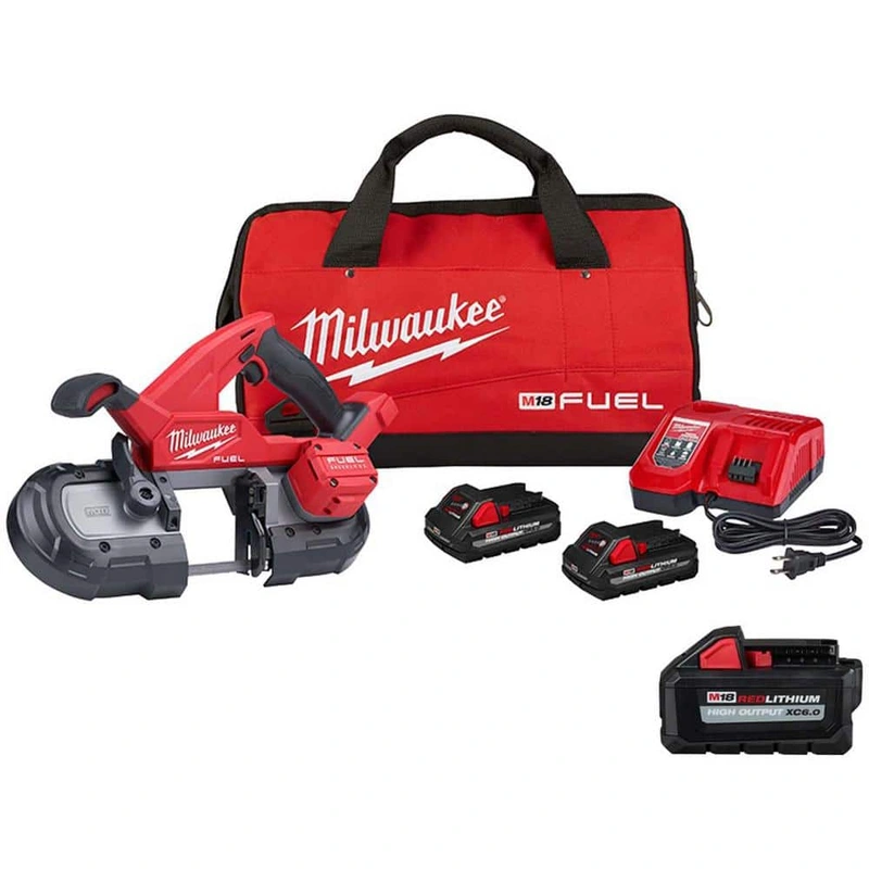 Milwaukee M18 FUEL Compact Cordless Bandsaw Kit The Milwaukee M18 FUEL Compact Cordless Bandsaw Kit offers unparalleled cutting efficiency with its POWERSTATE Brushless motor and Constant Power Technology. Designed with professionals in mind, it features j