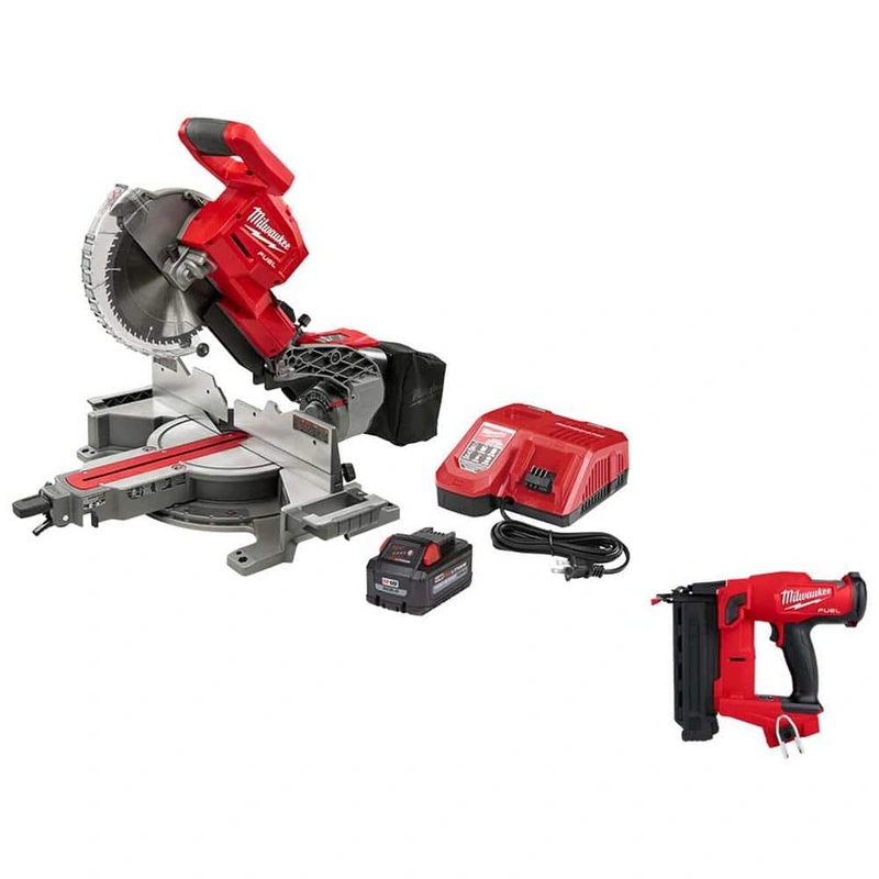 Milwaukee M18 FUEL Brushless Cordless Miter Saw Kit The Milwaukee M18 FUEL 10 in. Dual Bevel Sliding Compound Miter Saw Kit combines cordless convenience with unrivaled performance. Powered by an advanced brushless motor and REDLITHIUM technology, it handl