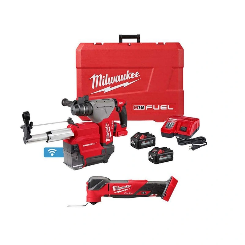 Milwaukee M18 FUEL 18V Lithium-Ion Brushless 1-1/8 in. Cordless SDS-Plus Rotary Hammer/Dust Extractor Kit & Oscillating Multi-Tool