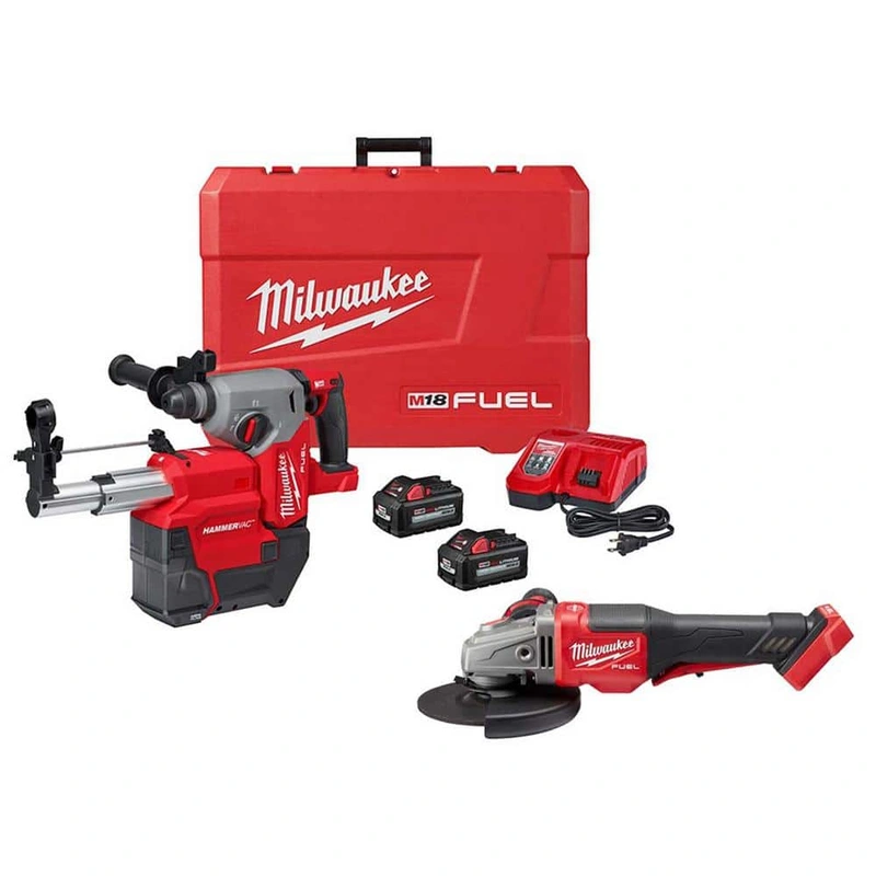Milwaukee M18 FUEL Cordless Rotary Hammer Kit The Milwaukee M18 FUEL SDS Plus Rotary Hammer Kit combines unmatched drilling power with a HEPA-filtered dust extractor for the ultimate in jobsite performance. Featuring advanced AUTOSTOP Control for safety, a