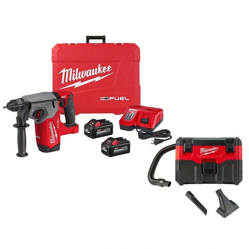 Milwaukee M18 FUEL Cordless Rotary Hammer & Vac Kit Take on your toughest projects with the Milwaukee M18 FUEL Cordless SDS-Plus Rotary Hammer Kit, which combines speed, power, and safety for unmatched performance. Coupled with a 2-Gal. wet/dry vacuum,