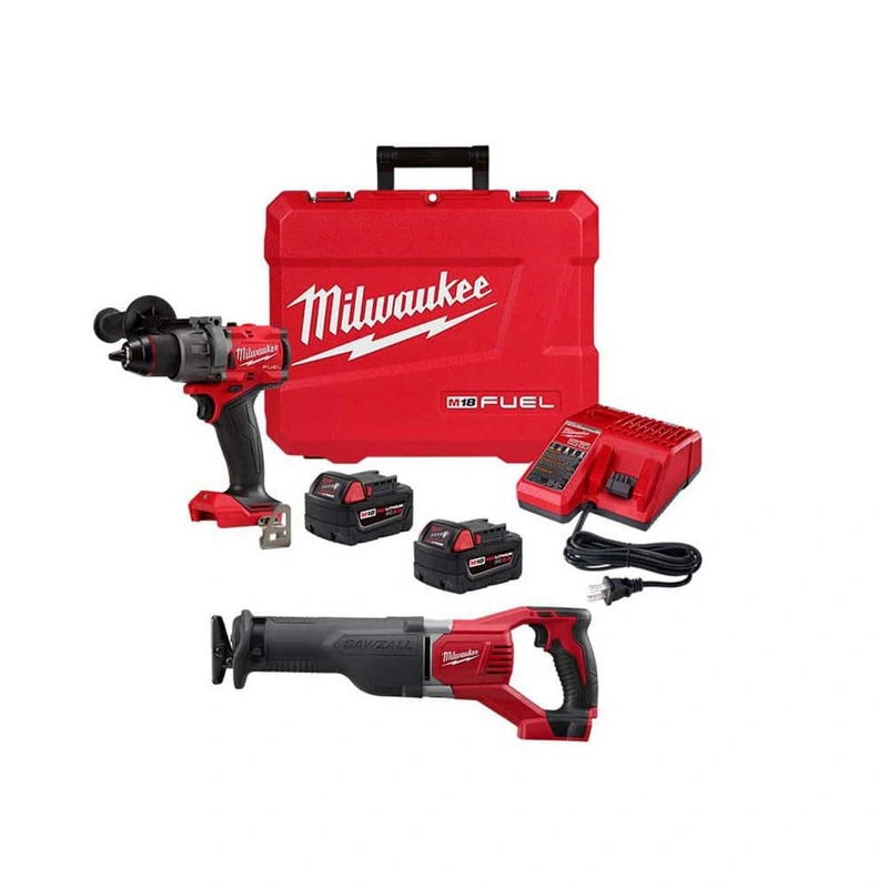Milwaukee M18 FUEL Cordless Drill Driver & SAWZALL Kit The Milwaukee M18 FUEL 18V Drill Driver Kit, paired with the SAWZALL Reciprocating Saw, offers unmatched power and versatility for tackling the toughest jobs. With a compact design and brushless mo