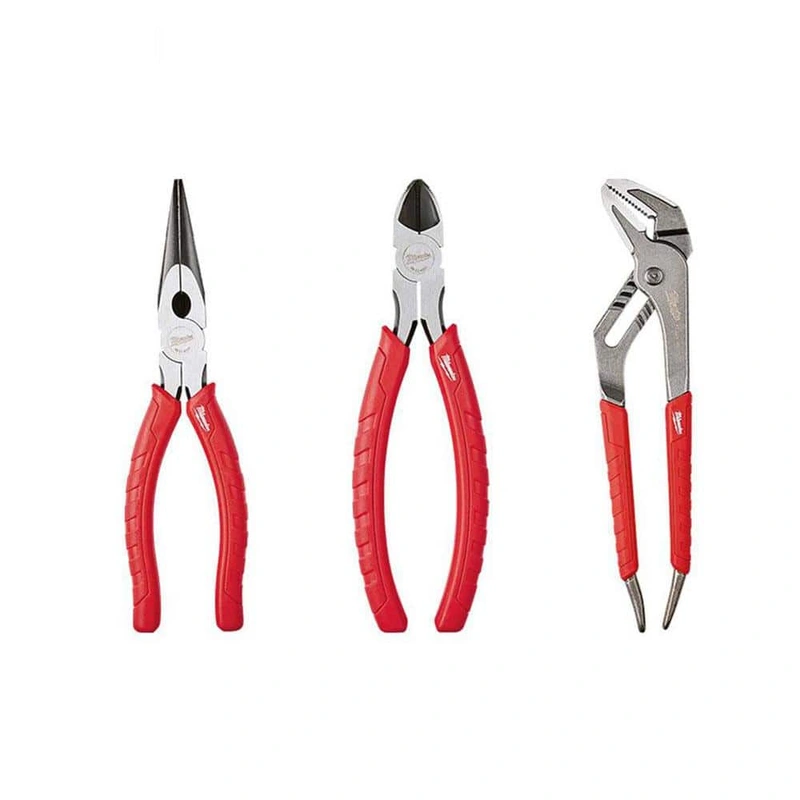 Milwaukee 3-Piece Pliers Kit Upgrade your tool kit with the Milwaukee 3-Piece Pliers Kit, perfect for a range of cutting and fastening tasks. These pliers feature hardened cutting edges and over-molded grips for unmatched durability and comfort, ensuring r