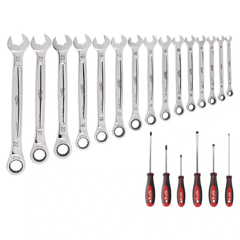 Milwaukee 21-Piece Ratcheting Wrench & Screwdriver Set The Milwaukee 21-Piece Ratcheting Wrench and Screwdriver Set is a professional-grade tool collection designed to maximize efficiency on the job. With features like MAX BITE for 25% more torque and