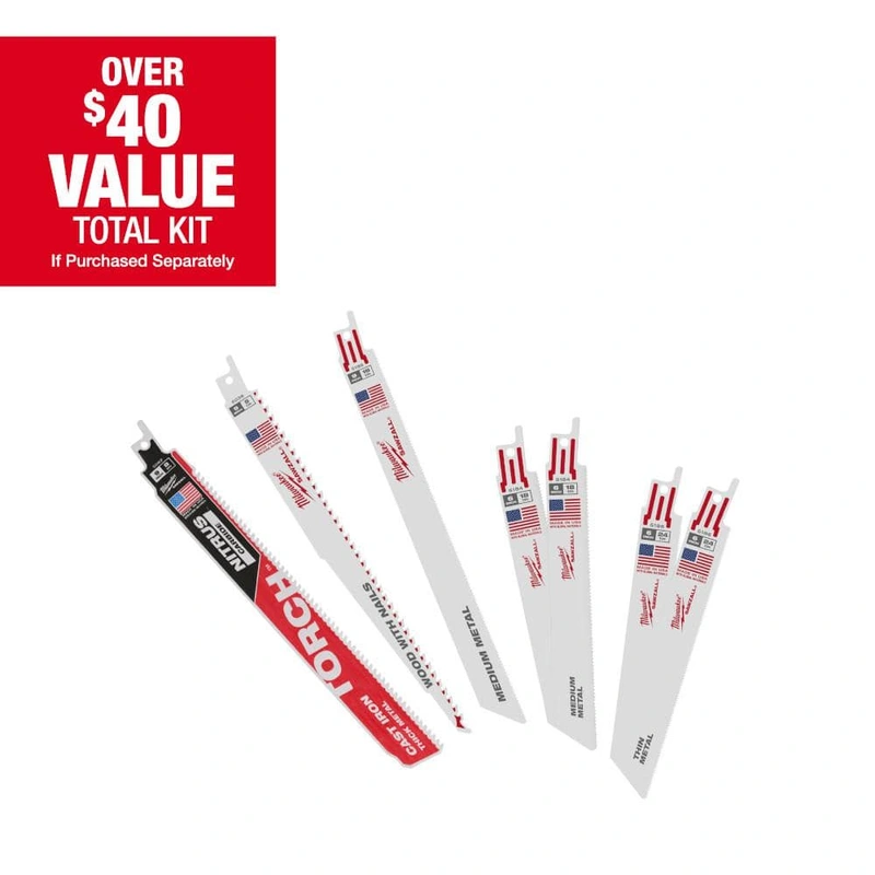 Tackle wood and metal tasks with Milwaukee’s 7-piece SAWZALL Blade Set, featuring precision-crafted bi-metal blades for enduring performance. The included NITRUS Torch Blade ensures rapid cutting with unmatched blade longevity, perfect for professionals and DIY enthusiasts tackling tough jobs.