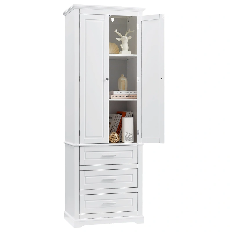 Transform your home into a sanctuary of sophistication with the ModernLuxe Utility Storage Cabinet. Its clean, white finish and gleaming glass doors add a touch of modern elegance to any room. Imagine it styled in a minimalistic kitchen or as a chic display unit in the living room. This cabinet isn’t just about storageit’s a testament to style, blending functionality with luxurious design elements to enhance your living space.