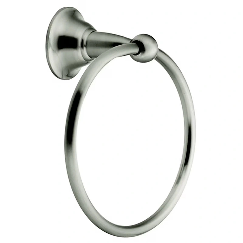 Brushed Nickel Finish Brings The Warm Look Of Stainless To Your BathTowel RingCollection available in multiple finishesMetal Mounting Post For Extra SecurityCorrosion resistantLimited lifetime warranty