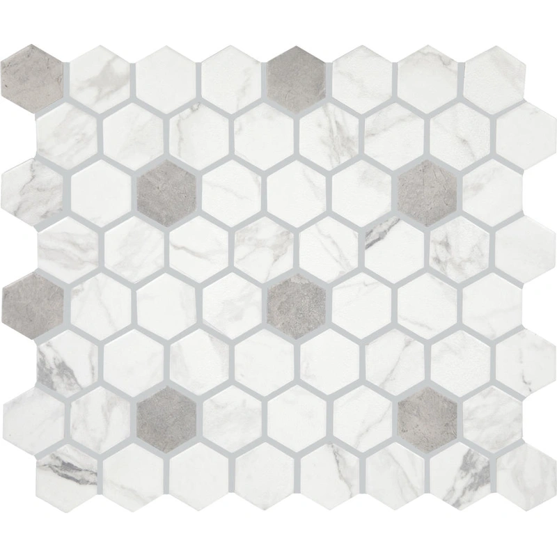 Bring unparalleled durability and style to your home with Mohawk Clean Protect Bianco Cascade Hexagon Mosaic Tileorder now and enhance your space!