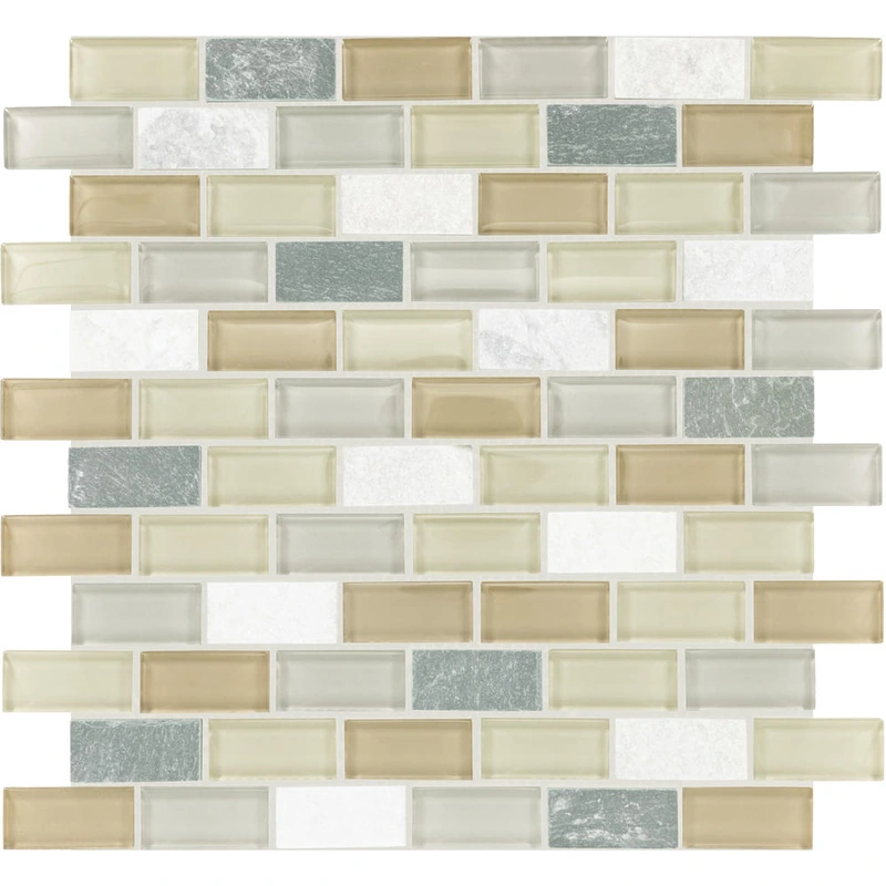 Krystal Slate Glass & Stone Mosaic Tile Elevate your interiors with the Mohawk Krystal Slate Storm mosaic tile, featuring a mesmerizing blend of natural stone and glass. Ideal for residential and commercial applications, this mosaic adds a touch of ele