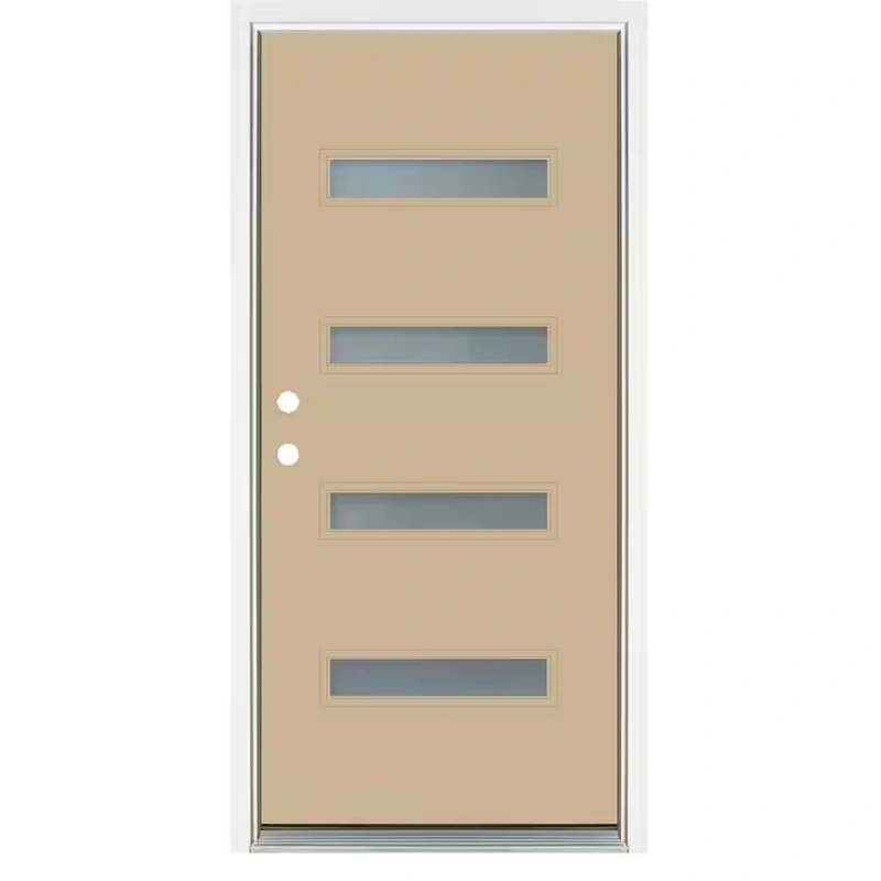 Product Description: Elevate your home’s entrance with the MP Doors 36 in. x 80 in. Smooth Latte Right-Hand Inswing 4 Lite Frosted Painted Fiberglass Prehung Front Door. This elegant and durable entry door combines style, functionality, and energy efficiency to enhance your home’s curb appeal and performance.