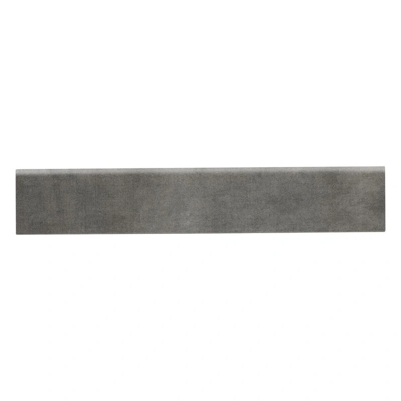 A: The bullnose trim acts as a seamless transition or finishing edge that complements contemporary and industrial dcor with its concrete-like appearance.