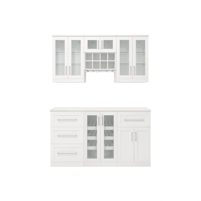 NewAge White Rectangle Home Bar Cabinet Elevate your entertainment space with the NewAge Products Home Bar Cabinet, a synthesis of elegance and utility. Featuring a classic shaker-style design with durable plywood construction, this cabinet is built to wit