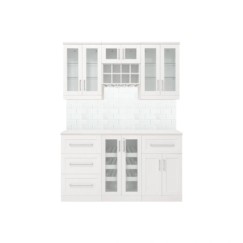 The NewAge Home Bar Cabinet is the perfect fusion of style and functionality, designed for wine enthusiasts and homeowners alike. This sleek bar cabinet features a solid plywood core with a stain-resistant finish, complemented by premium soft-close hardware that ensures quiet operation. Its elegant design is elevated by a sophisticated super white glass tile backsplash.