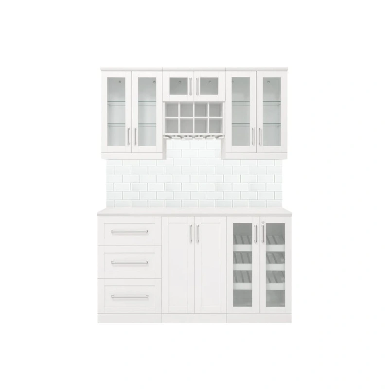 The NewAge Home Bar Cabinet is an elegant blend of style and functionality, perfect for any modern home. Crafted with a solid plywood core, it features soft-close hardware and stain-resistant finishes to ensure durability and ease of use. This sophisticated bar cabinet comes complete with display and wine rack cabinets, making it ideal for wine enthusiasts and entertainers alike.