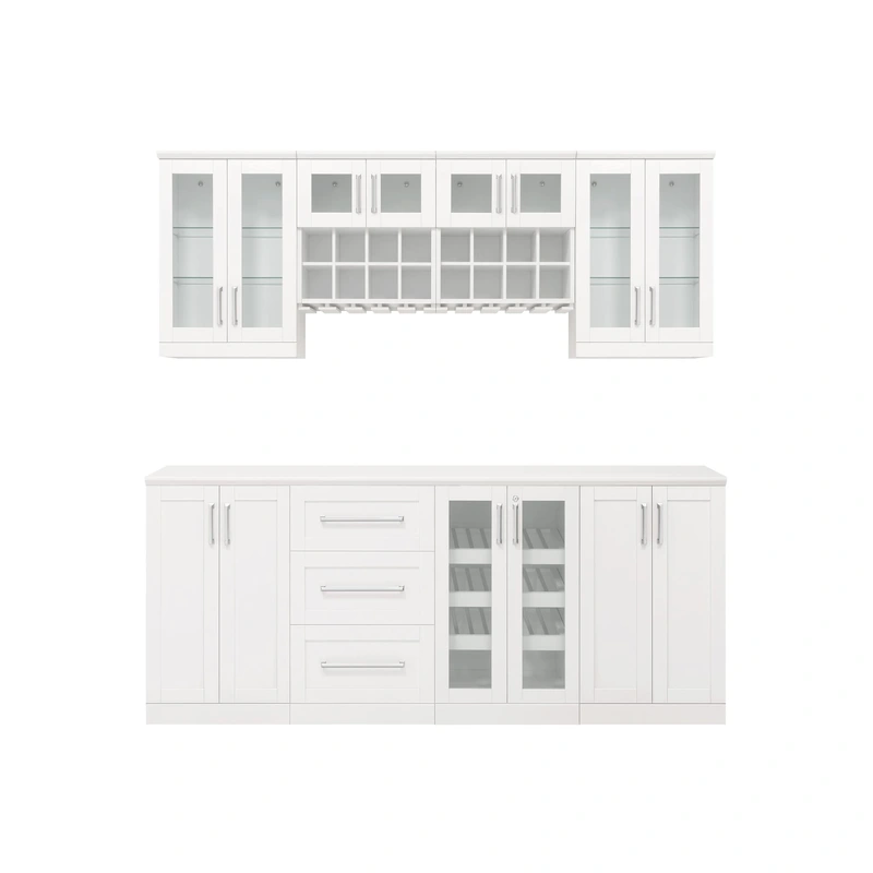 Transform your living space with the NewAge Products Home Bar 84-in x 85-in White Rectangle Bar Cabinet. Featuring a sleek yet functional design, this elegant bar cabinet combines classic shaker-style doors with modern functionality. Perfect for displaying your finest collections while providing ample storage for all your bar essentials.