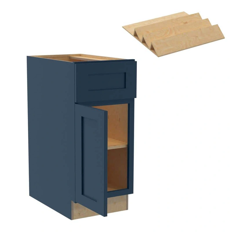 The Newport Plywood Base Kitchen Cabinet brings durable elegance to your kitchen with its mythic blue finish and shaker-style design. Its solid MDF construction and high-quality soft-close mechanisms make for a timeless addition that marries beauty with functionality. The unit offers ample storage with a full-depth adjustable shelf and a convenient spice drawer.