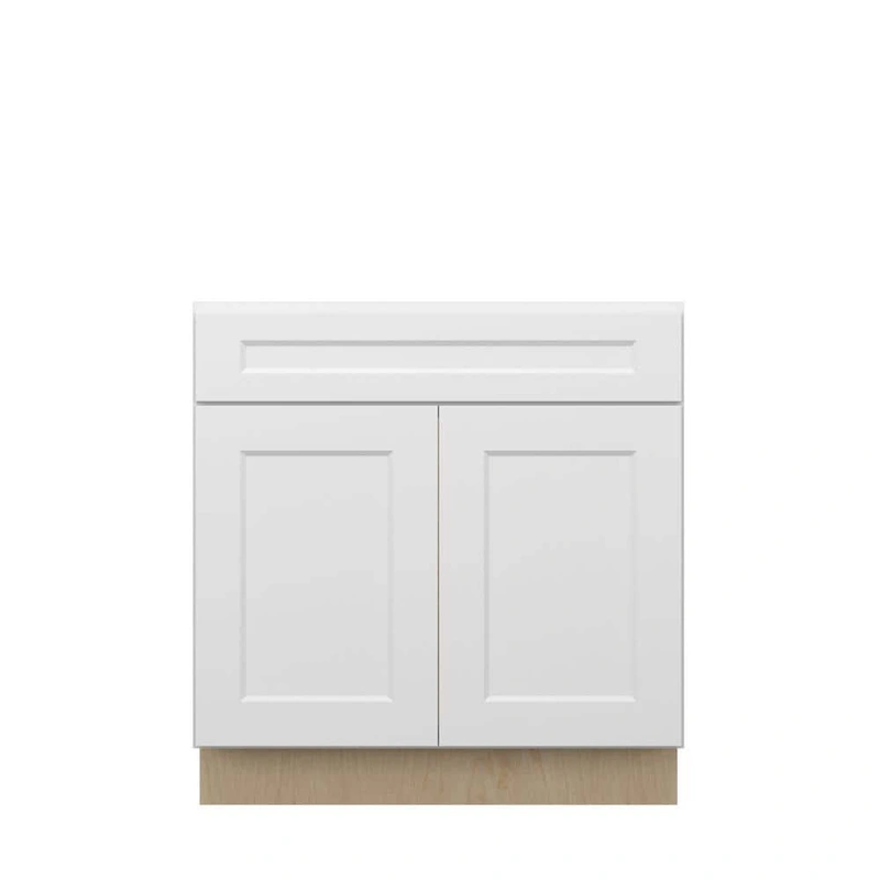 Norfolk Shaker 33" White Sink Base Cabinet The Norfolk Shaker Sink Base Cabinet offers timeless elegance with its painted white plywood construction and sophisticated Shaker design. It seamlessly integrates into any kitchen, providing durability with solid