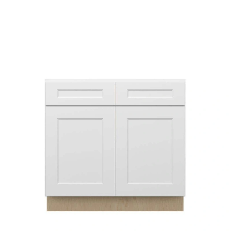 Norfolk Shaker White Base Cabinet 36x34.5x24" Upgrade your kitchen with the Norfolk Shaker Assembled Base Cabinet, offering timeless elegance and unmatched functionality. Meticulously crafted with a painted white finish, solid birch face frames, and full-e