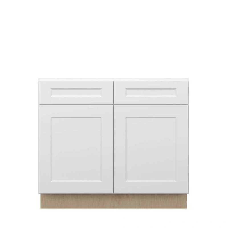 Norfolk Shaker White Sink Base Cabinet The Norfolk Shaker Sink Base Cabinet is crafted with precision from durable painted white plywood, offering a blend of elegance and resilience for your kitchen. With solid birch face frames and HDF doors, this cabinet