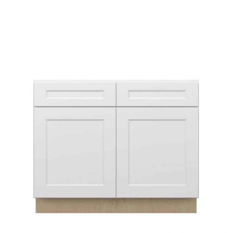 Norfolk 42 White Shaker Sink Base Cabinet Upgrade your kitchen with the Norfolk Shaker Sink Base Cabinet, featuring a classic white finish and durable plywood construction. This 42-inch wide cabinet boasts a timeless design with its recessed panel HDF door