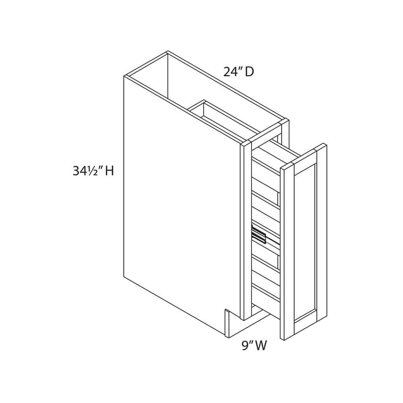 Norfolk Shaker Base Cabinet with Spice Pullout Elevate your kitchen organization with the Norfolk Shaker Base Cabinet, featuring a stylish painted white finish and a practical spice pullout. This fully assembled unit is crafted from plywood with solid birc