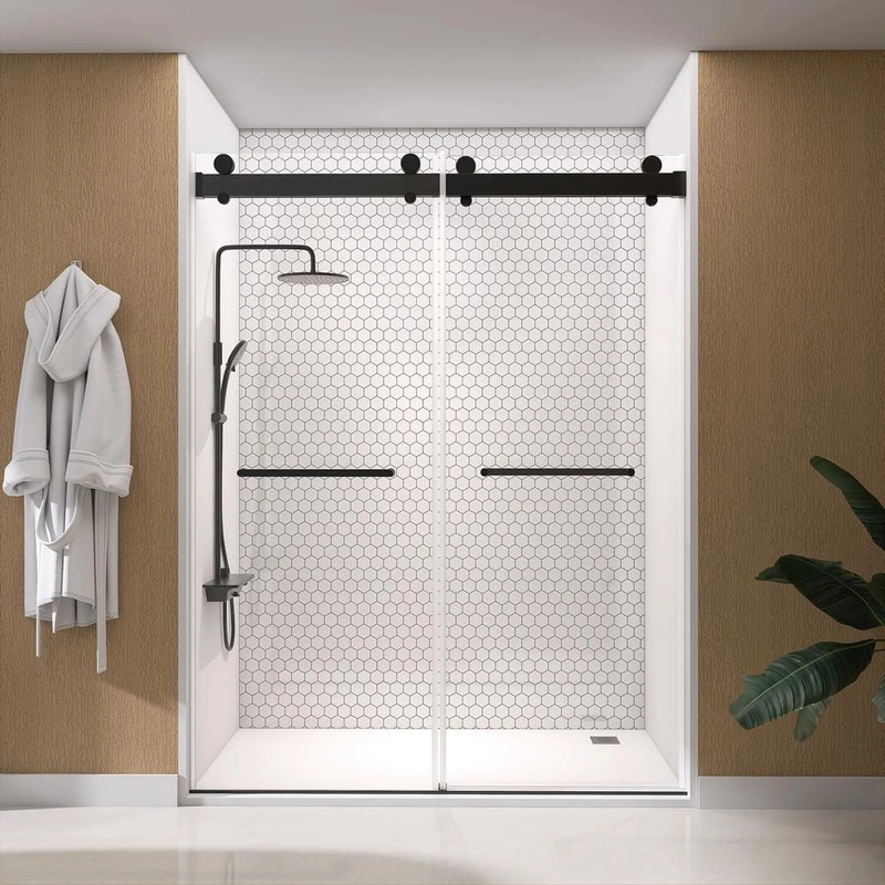 Elevate your bathroom aesthetics with the NTQ 60-inch Matte Black Frameless Sliding Shower Door. This sophisticated, soft-close double sliding door, made from 3/8-inch tempered glass, features an ultra-modern, matte black finish that complements any bathroom style. Designed for both performance and elegance, its frameless structure and leak-proof design ensure a luxurious and hassle-free shower experience.