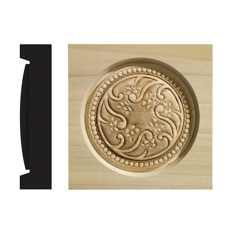 Whimsey Collection White Hardwood Corner Block Moulding Elevate your home's aesthetic with the Whimsey Collection Corner Block Moulding by Ornamental Mouldings. Meticulously crafted from high-quality hardwood, this intricate, deeply embossed design brings
