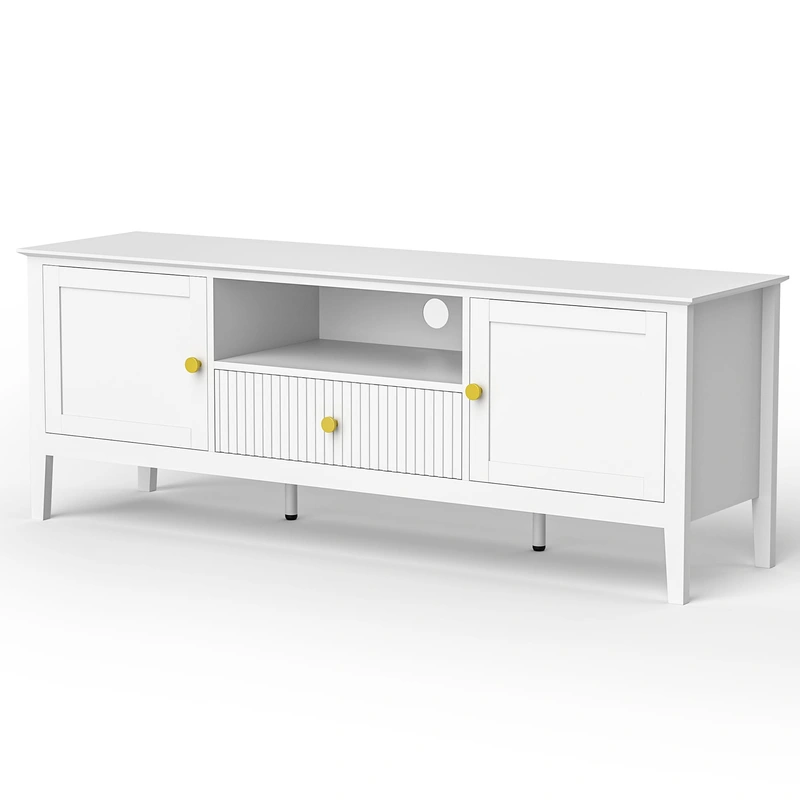 PamaPic White TV Cabinet with Integrated Mount Upgrade your living space with the PamaPic Modern/Contemporary White TV Cabinet, designed to accommodate TVs up to 70 inches. This sleek unit features an integrated TV mount and ample storage, combining style