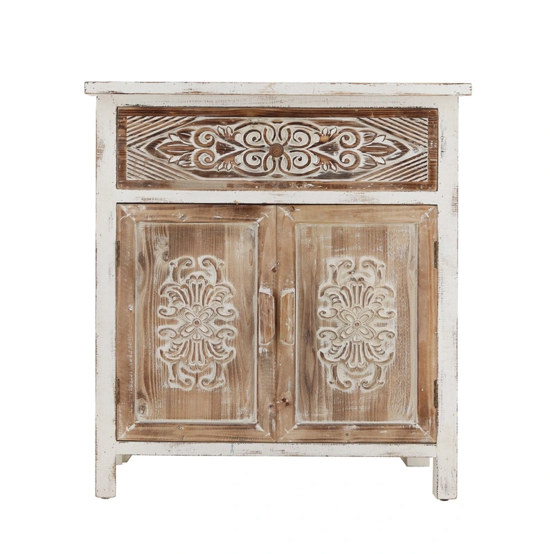 Embrace the warmth of countryside elegance with the Parisloft Wood Media Cabinet, a masterpiece in rustic design. Its intricately carved panels and robust wood construction exude a rich, inviting vibe, transforming any space into a cozy haven. Style it with lush green plants or rustic vases to enhance its vintage charm, creating a captivating focal point in your home. This cabinet isn’t just furniture; it’s a testament to luxurious, grounded living.