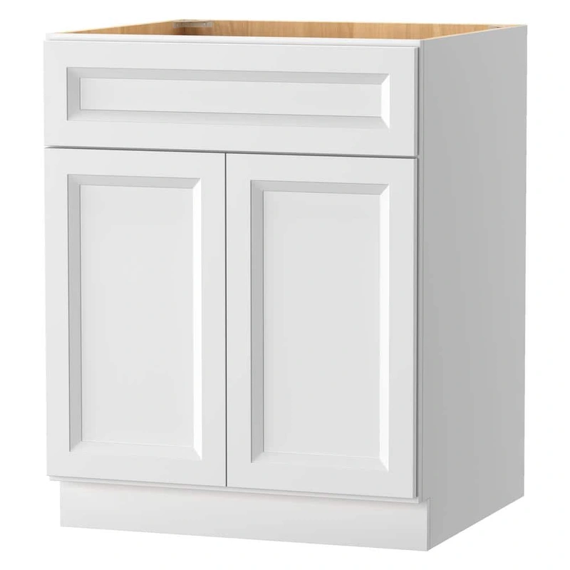PELHAM & WHITE Keyport Shaker 27 in. W x 24 in. D x 34.5 in. H in White Plywood Tool-Free Ready to Assemble Floor Base Kitchen Cabinet