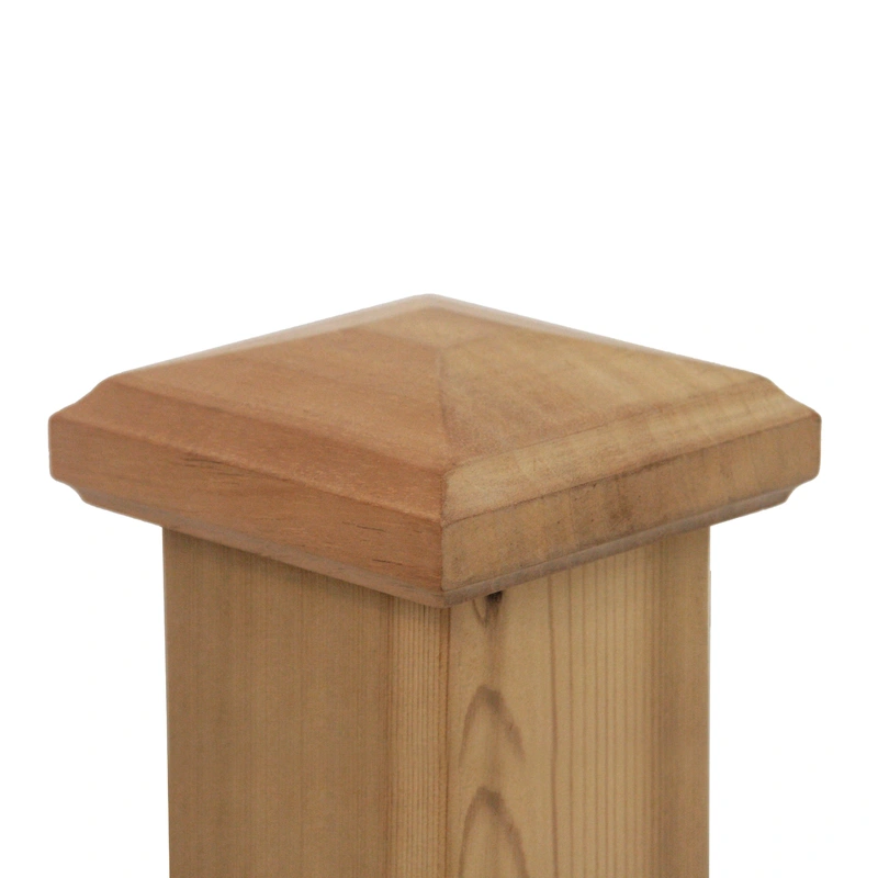 Mahogany Pyramid Wood Post Cap Enhance your outdoor living space with the PERMAKAP Pyramid One-Piece Deck Post Cap, made from kiln-dried mahogany for unmatched durability against harsh weather. This solid, no-glue and no-staples design ensures seamless ins