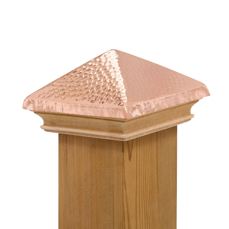 PERMAKAP Copper Mahogany Deck Post Cap Enhance the elegance and durability of your decking with the PERMAKAP 4" x 4" West Indies Pyramid One-Piece Sanded Copper Mahogany Deck Post Cap. Crafted with 20-gauge copper and supported by a lifetime guarantee, thi