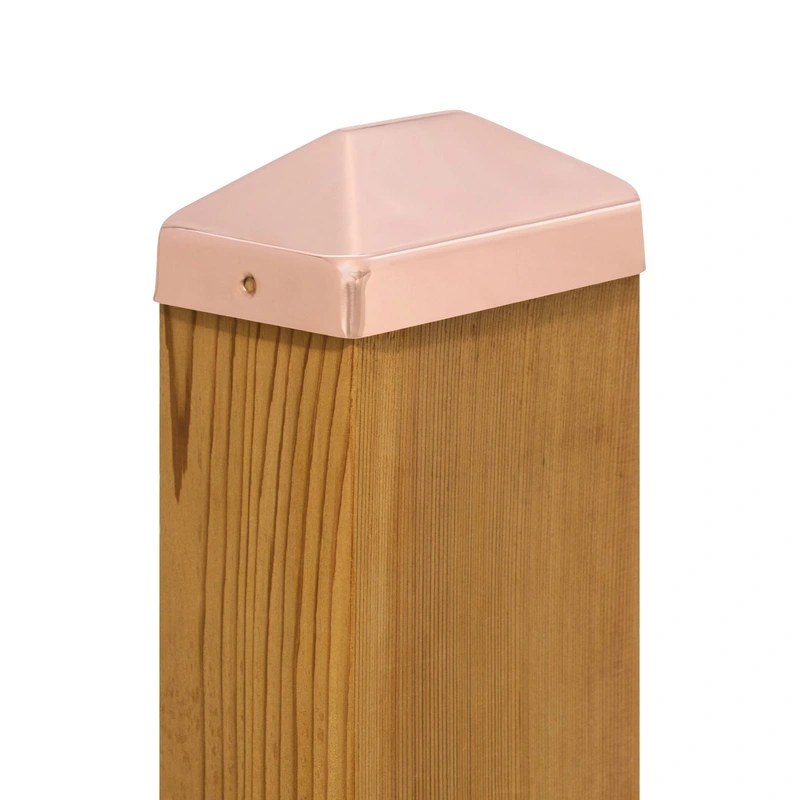 Solid Copper Deck Post Cap Elevate your outdoor space with the PERMAKAP Pyramid Solid Polished Copper Deck Post Cap, crafted from durable 20 gauge copper that promises lasting beauty and performance. Designed for easy installation on nominal 4x6-inch posts