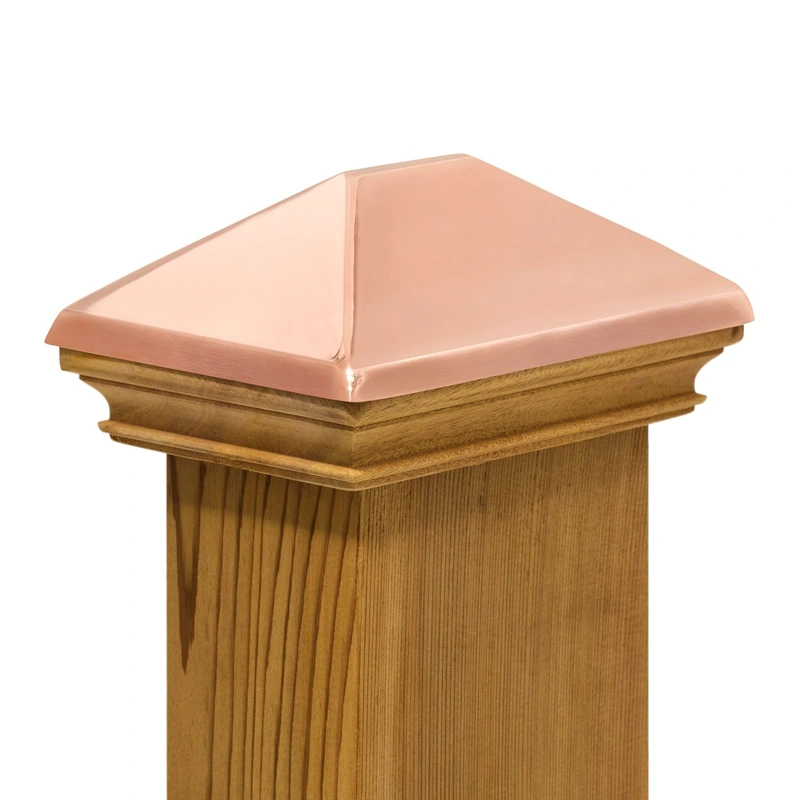 Copper Mahogany Deck Post Cap Elevate your deck's aesthetics with the PERMAKAP 4x6 Pyramid Sanded Copper Mahogany Deck Post Cap, the only one-piece wood post cap designed for elegance and durability. Crafted with thick copper and premium mahogany, it promi