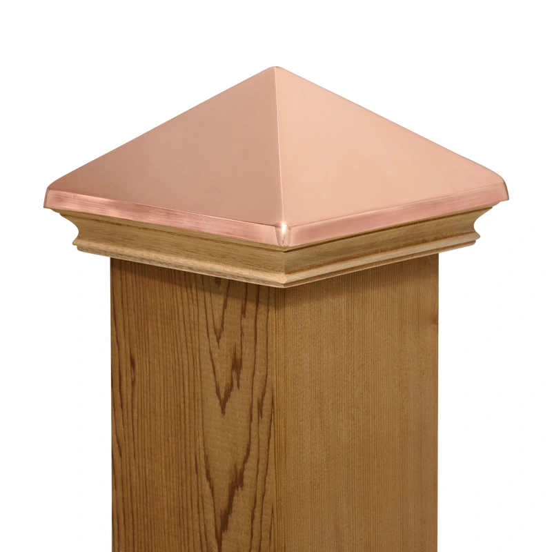 6x6 Pyramid Copper Deck Post Cap Elevate your deck with the PERMAKAP West Indies Pyramid Deck Post Cap. This sanded copper and mahogany cap provides a blend of durability and sophisticated design, promising not only lifetime protection against split corner