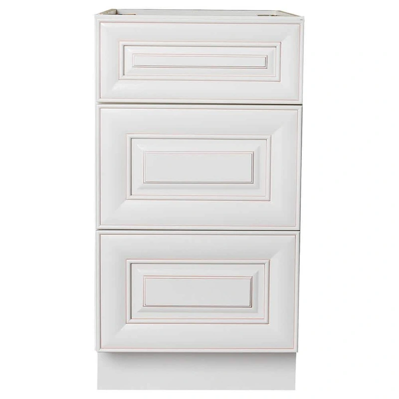 Plywell Antique White Base Drawer Unit Enhance your kitchen with the Plywell Antique White Base Drawer Unit, featuring solid plywood construction for durability and smooth ball-bearing glides for ease of use. With its classic antique white finish, this cab